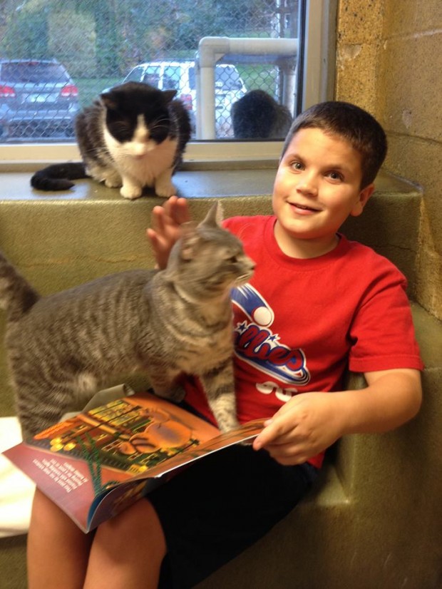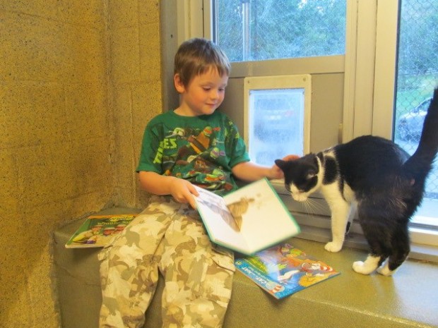 Така се родила програмата Book Buddies в приюта Animal Rescue League of Berks County – деца от началното училище (а ако имат желание, дори и по-големи) посещават животните от приюта, хранят ги, играят си с тях и им четат любимите си книги.